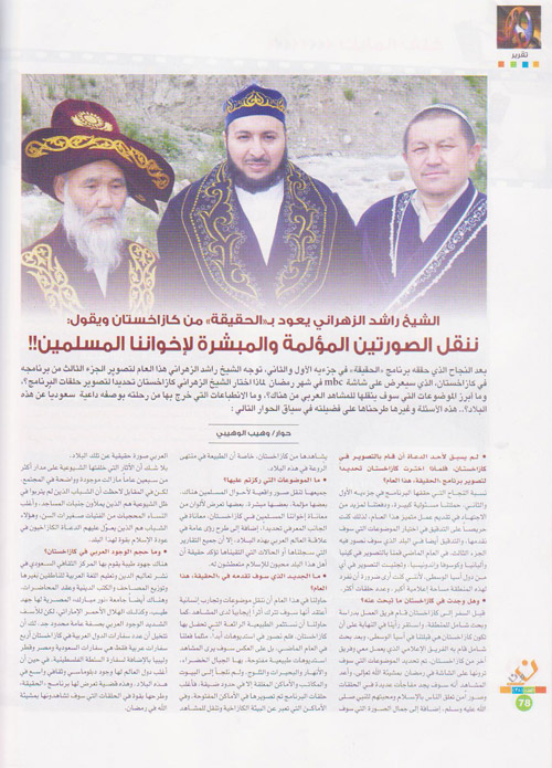 أجرت مجلت نون في عددها (38) لقاءاً مع الشيخ راشد الزهراني حول برنامج الحقيقة 3 حيث تحدث الشيخ عن البرنامج وعن كازخستان وسبب إختياره لتصوير البرنامج فيها كما تحدث عن أوضاع المسلمين هناك وتعلقهم بالقرآن وحفاظهم على الهوية الإسلامية